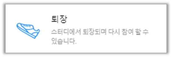 퇴장을 선택하셨다면 스터디원은 해당 스터디룸에 다시 참여가 가능합니다.