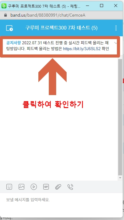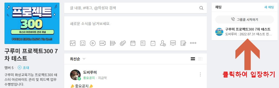 테스트 업무가 진행되는 채팅방으로 입장해 주세요.