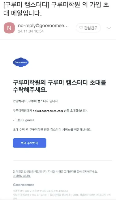 학생이 이메일로 받은 가입 링크를 통해 가입 진행(이메일 예시)