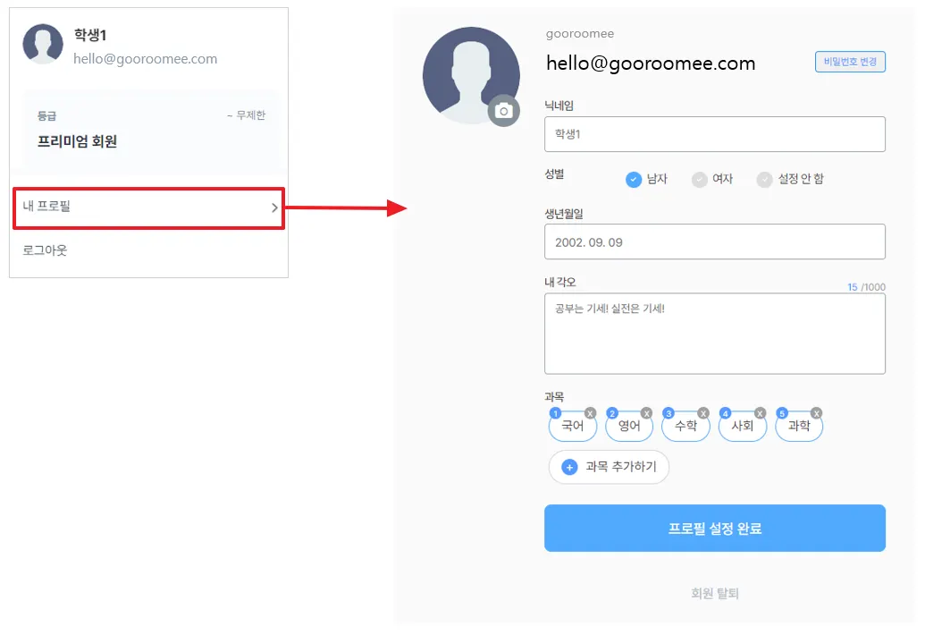 내 프로필에서 변경한 닉네임은 새로 입장하는 스터디방에서만 적용이 됩니다.