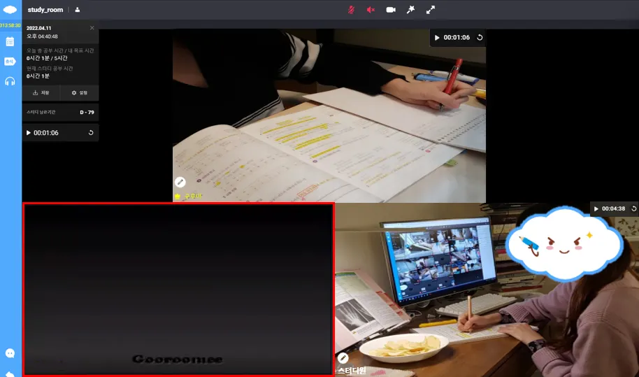 방에 입장 후 카메라가 블랙으로 나온다면 네트워크가 불안정하여 웹에서 카메라를 불러오는데 영향을 줄 수 있습니다.