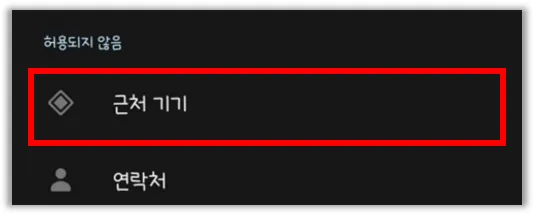 근처기기 라는 부분이 허용되지 않음에 있다면 근처기기를 클릭합니다.