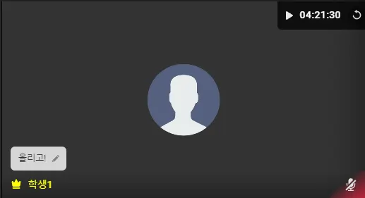 스터디방 내에서 카메라/마이크 권한이 없어 아이콘이 보이지 않고, 화면이 보이지 않을 수 있습니다.