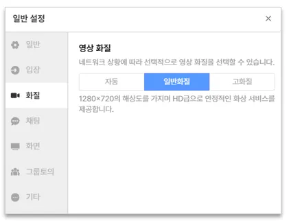 네트워크 상황에 따라서 선택적으로 영상 화질을 선택할 수 있습니다.