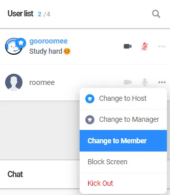 When you create a study room, you become the 'Host' and can assign roles to members.