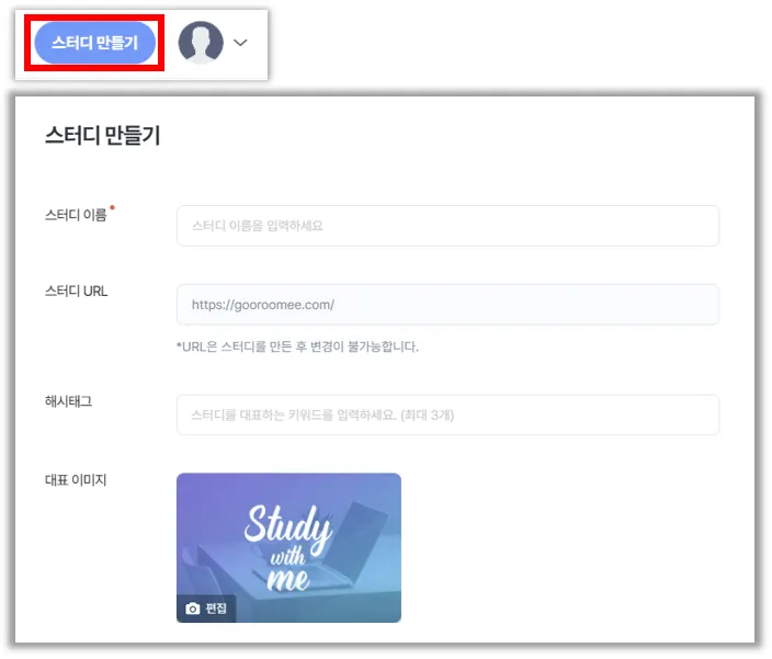 스터디 이름: 스터디방 이름을 설정합니다.(필수 입력값)