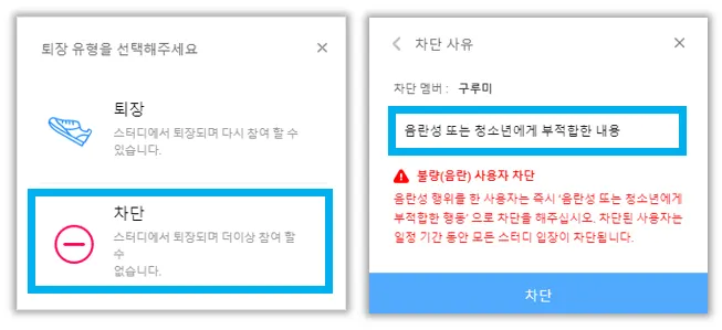 일정 기간 동안 모든 스터디 입장이 차단됩니다.