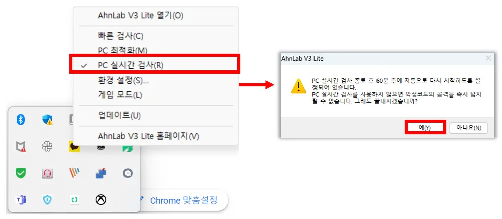 해당 보안 프로그램 설정으로 접속하여 실시간 검사 중지 후에 다시 미팅룸에 입장합니다.