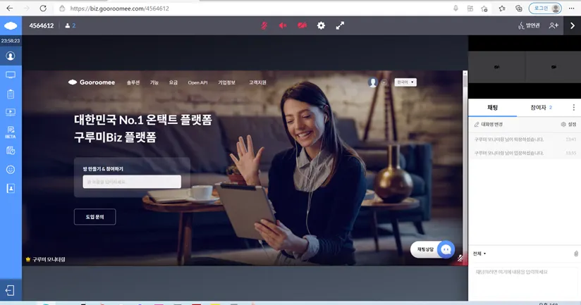참여자와 학생의 화면은 구루미 화면 내에서 공유가 되는 화면이 보입니다.