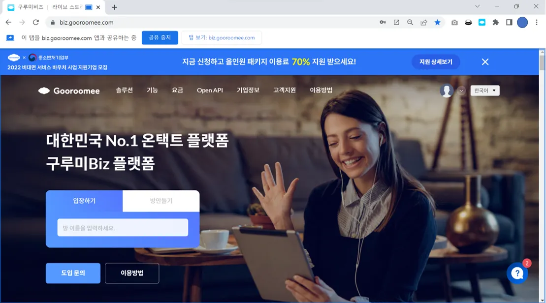 큰 화면으로 화면공유가 되고 있는 화면을 볼 수 있습니다.
