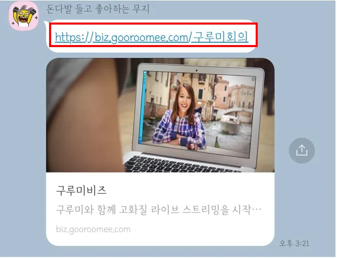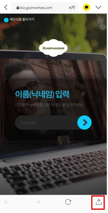 카카오톡에서는 구루미 입장이 안됩니다. 오른쪽 하단의 공유하기 아이콘을 눌러주세요.