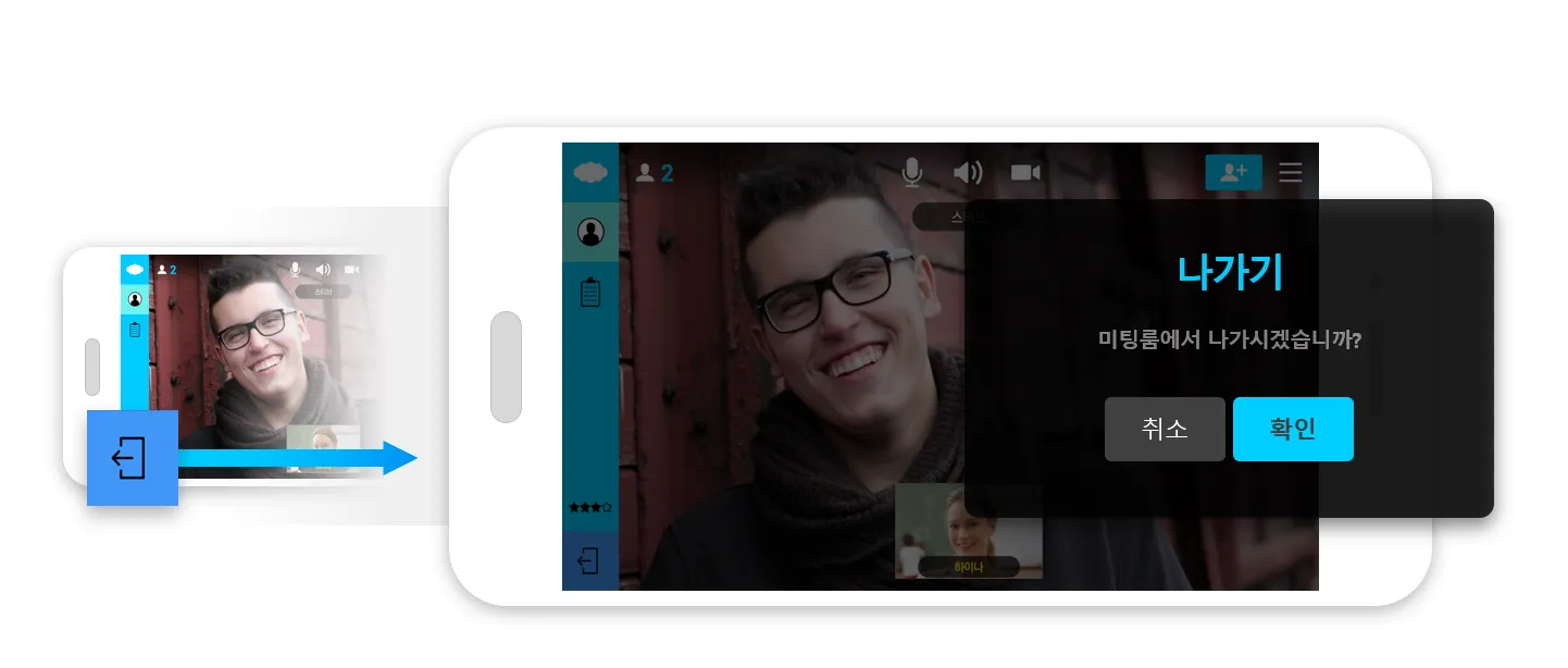 화면 좌측 하단의 나가기 버튼을 눌러 미팅룸을 나가주시면 됩니다.