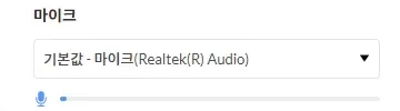 마이크 장치 선택 후 소리를 내면 정상 송출 되는지 알 수 있어요!