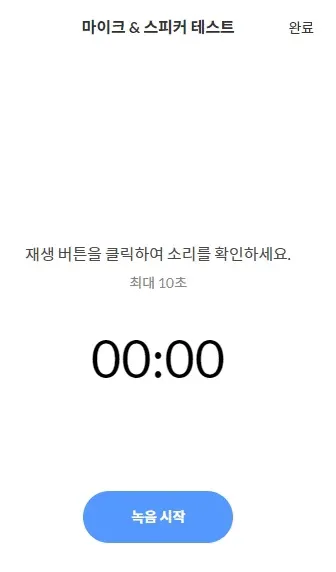 마이크/스피커 테스트 버튼을 눌러 본인 소리를 녹음하여