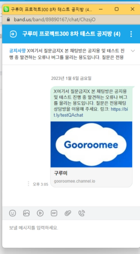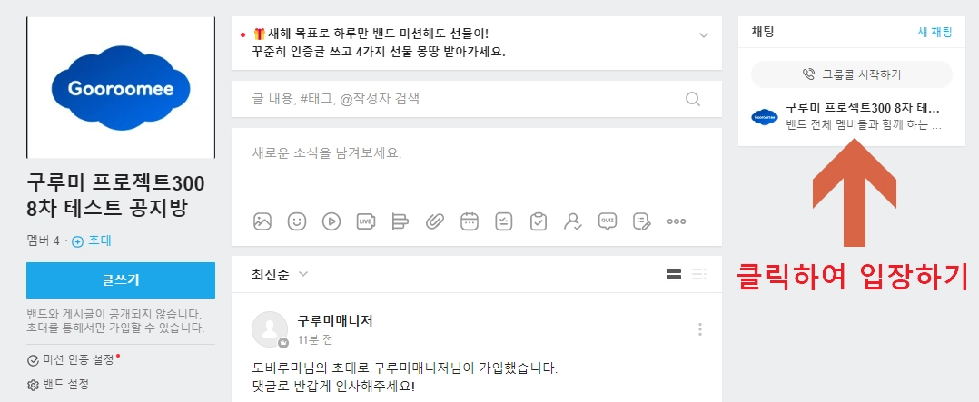 테스트 업무가 진행되는 채팅방으로 입장해 주세요.
