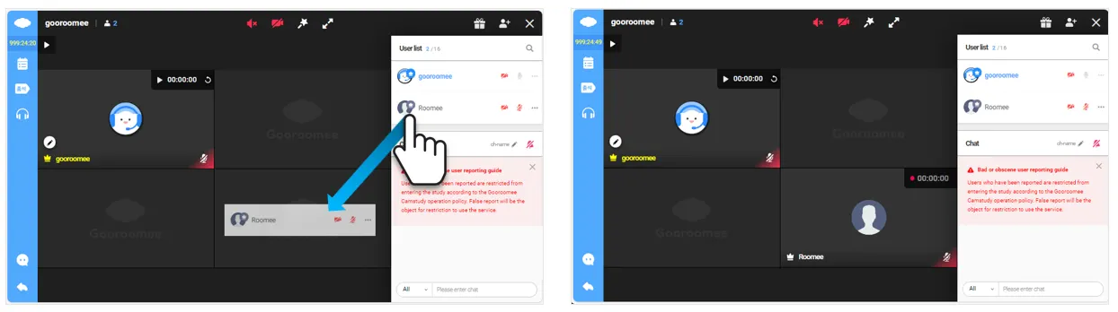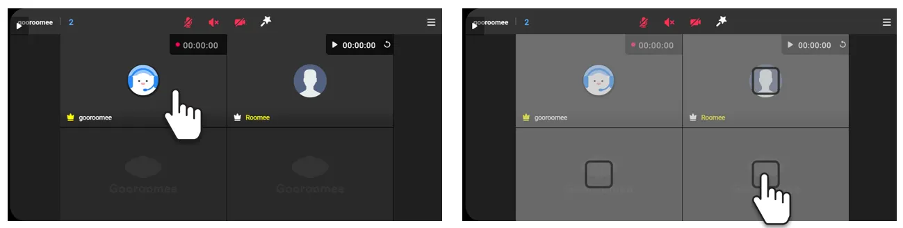 If there are more participants than the fixed layout can accommodate, your screen may not appear in the layout. In this case, attendance checking and stopwatch functions won't work.