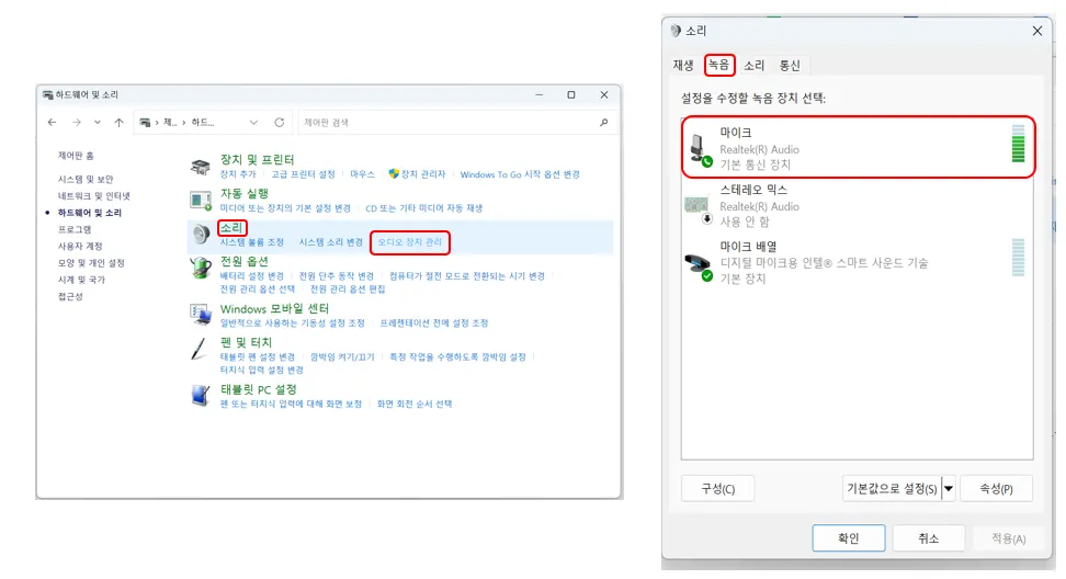 (Window) 그럼에도 마이크 작동이 안 될 경우