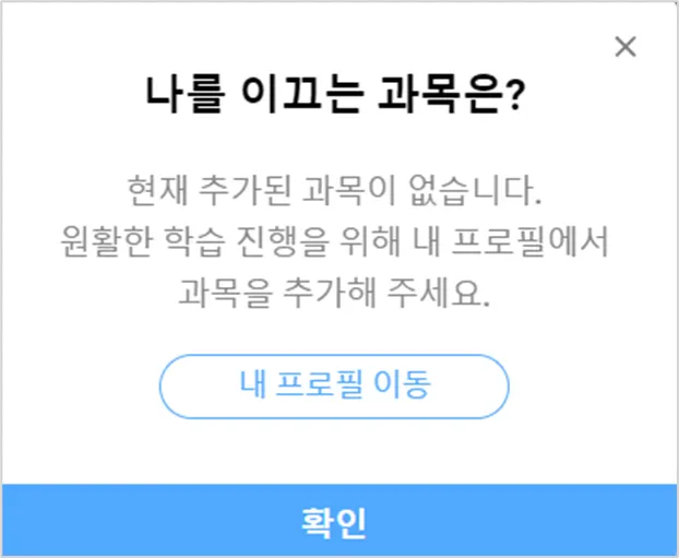 과목을 추가하지 않았다면 반드시 프로필에서 추가 후 타이머를 이용해야 합니다.