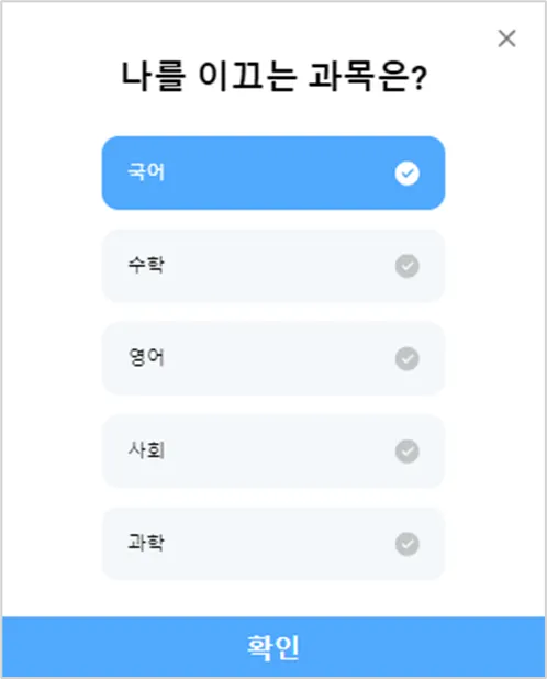 출석체크 및 타이머를 재생할 때는 과목을 선택 후 ‘확인’ 버튼을 눌러야 합니다.