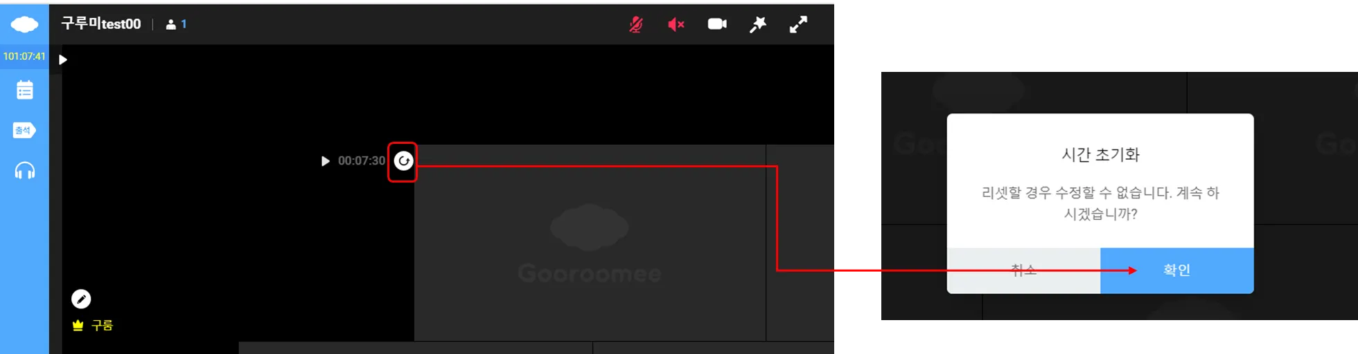 출석체크와 달리, 공부기록에 누적이 되지 않으므로 반드시 타이머에 기록된 공부시간을 초기화할 때에만 사용해 주세요.