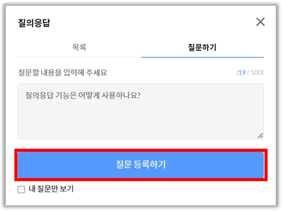 2. 질문하기를 클릭한 후, 질문할 내용을 입력하고 등록합니다.