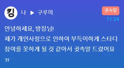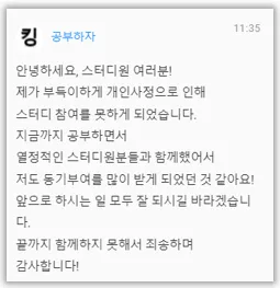 또는 여러가지 부득이한 사정으로 인하여 참여하던 스터디룸에서 퇴장을 계획하고 계시다면
