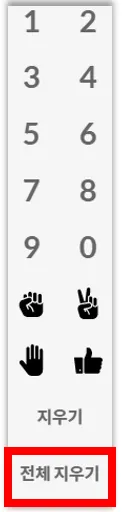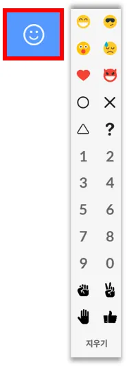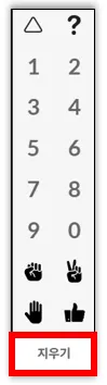 학생들이 붙여놓은 스티커를 교사/조교 권한을 가지고 계신 분이 전체 지우기 버튼을 눌러 현재 스티커를 붙여놓은 모든 학생들의 스티커를 삭제할 수 있습니다.