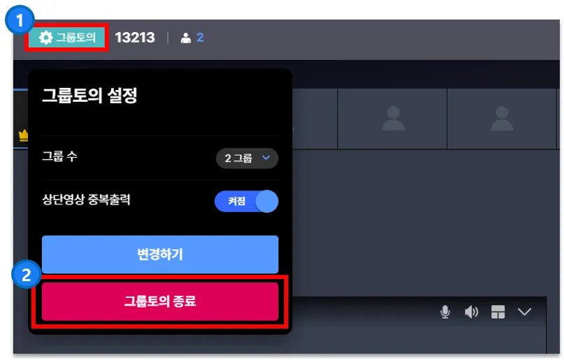 그룹 토의 종료 버튼을 눌러 종료해 주세요.