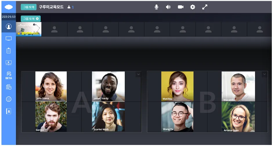 그룹토의 시작하기 버튼을 누르면 그룹토의가 바로 시작됩니다.