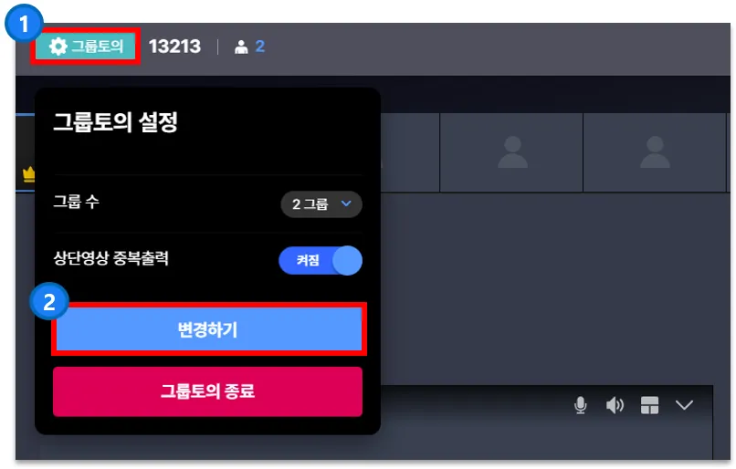 그룹토의를 하는 중, 그룹 수 등의 설정을 바꾸고 싶으시다면?