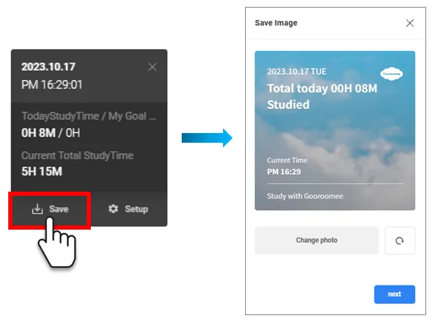By clicking the Save button on the widget, you can save your daily study record as an image file.