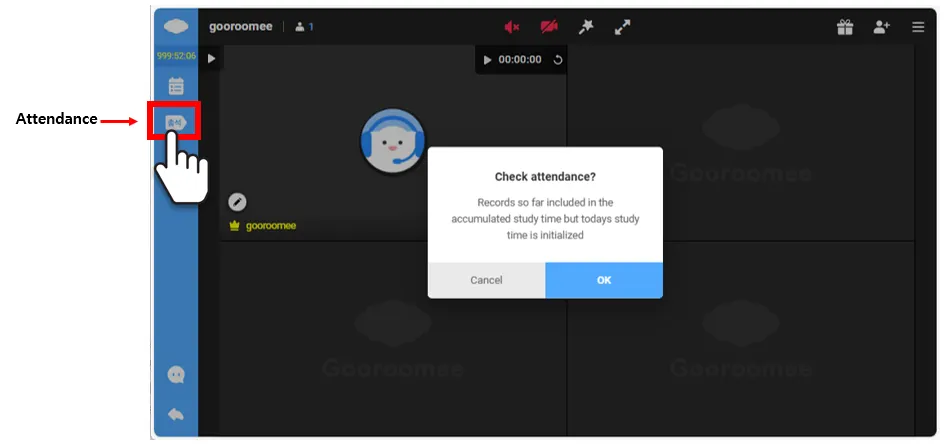 Clicking the "Attendance" button will save the records up to that point, but it will reset today's study time.