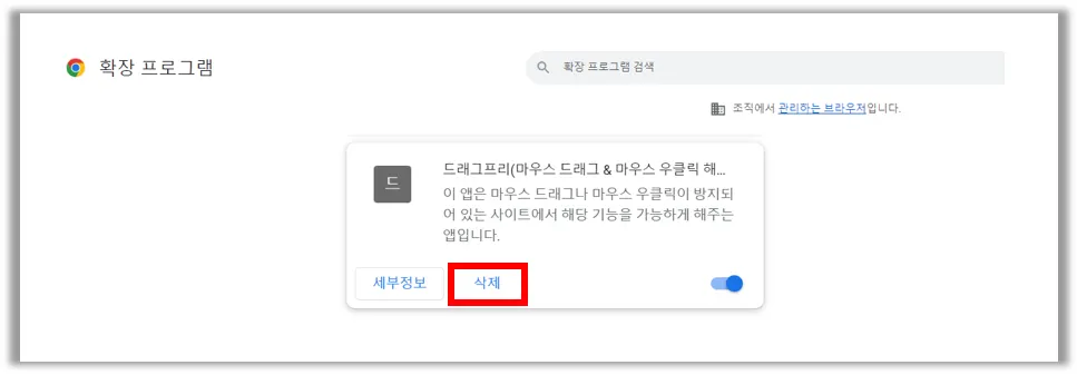 몇몇 크롬 확장 프로그램(ex. 드래그 프리(drag free))을 설치하게 되면