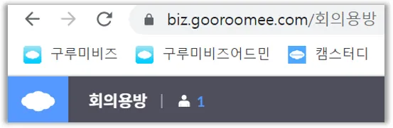 ex ) 개설 또는 참여할 미팅룸 이름이 "회의용방"일 경우 → biz.gooroomee.com/회의용방