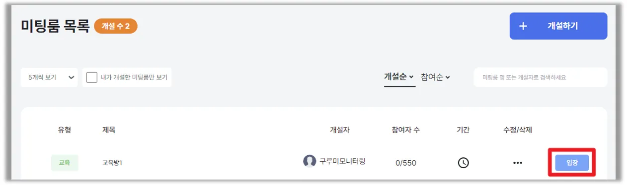 입장 미팅룸 제목 : 교육방1